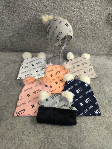 کلاه بچگانه تریکو گوشدار طرح BTS داخل پشمی و بسیار گرم در رنگ بندی متنوع